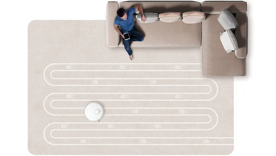 Пылесос Dreame D20 Pro оснащён инновационной технологией ультразвукового сканирования, которая с высокой точностью определяет тип напольного покрытия. При обнаружении ковра робот автоматически переключается в режим повышенной мощности, максимально увеличивая силу всасывания для эффективного удаления въевшейся грязи, пыли и аллергенов, глубоко проникающих в ворс. Ультразвуковые датчики реагируют независимо от цвета и текстуры ковра, исключая ложные срабатывания. По завершении уборки коврового участка устройство возвращается в стандартный режим, экономя заряд батареи. Эта адаптивная система оптимизирует распределение энергии, повышая общую эффективность уборки и обеспечивая максимальную производительность на разных типах поверхностей.