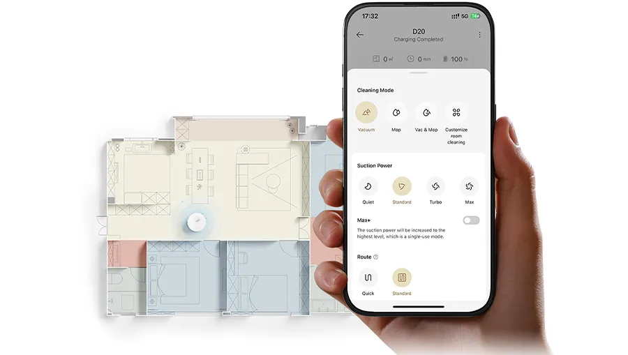 Полноценный контроль над уборкой становится возможен благодаря интеграции с приложением Dreamehome, доступным на iOS и Android. Это приложение позволяет не только запускать и останавливать уборку, но и настраивать каждую деталь процесса. Например, можно установить разные режимы для каждой комнаты: интенсивный на кухне и деликатный в спальне. Робот поддерживает расписания уборки, автоматически включаясь в заданное время без вашего участия. Вы можете выбирать типы уборки (сухая, влажная, комбинированная), регулировать мощность и устанавливать зоны запрета или приоритета. Кроме того, приложение отправляет уведомления о завершении уборки, необходимости очистки фильтра или низком уровне заряда, обеспечивая удобство и эффективность.