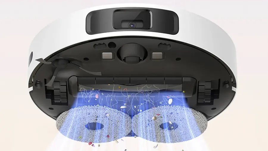 Робот тщательно моет пол благодаря технологии DuoScrub. Вода поступает из резервуара (300 мл) и увлажняет двойные микрофибровые насадки. Нажимая на пол, они вращаются в противоположные стороны. Устраняйте любые загрязнения и стойкие пятна — скоростные насадки делают уборку эффективной, как никогда.