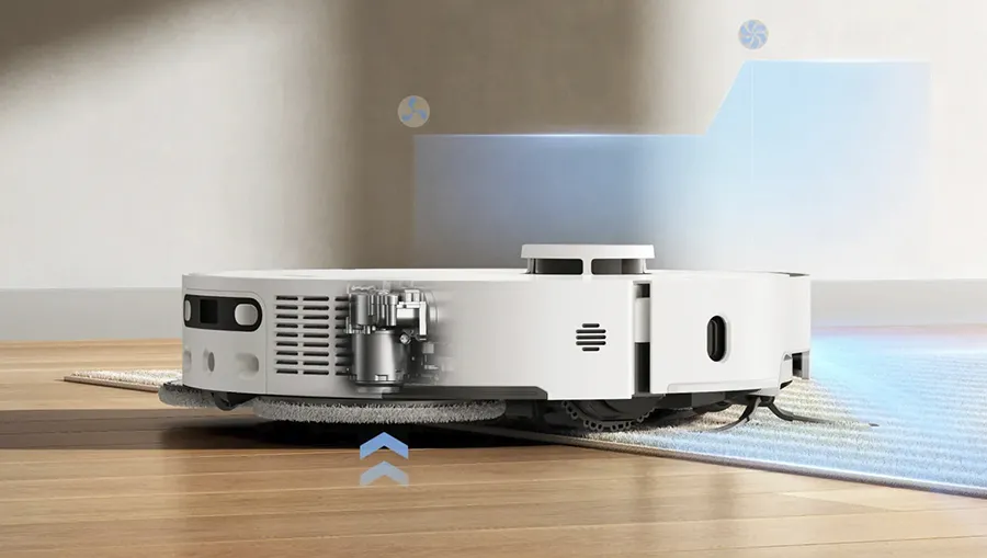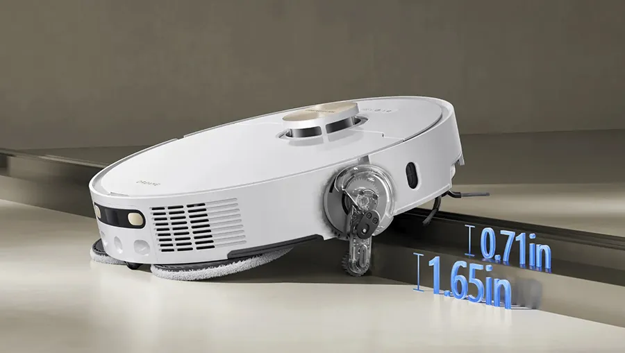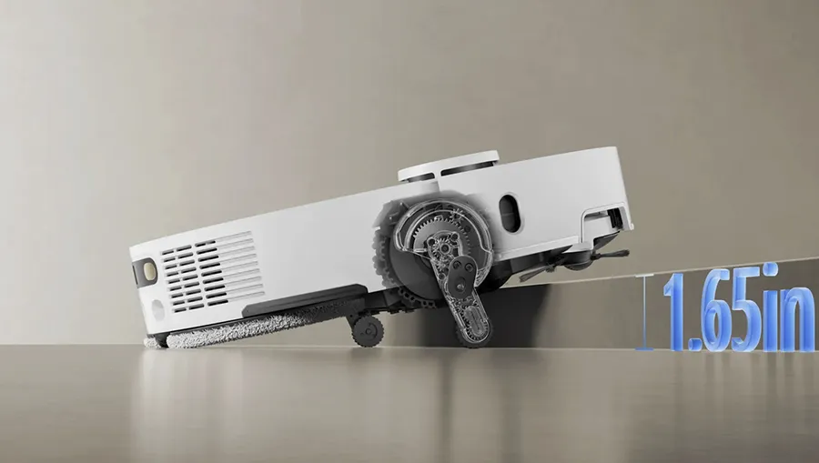 Благодаря выдвижным ножкам, робот-пылесос легко и плавно преодолевает вертикальные препятствия высотой до 4,2 см. Это позволяет ему эффективно убирать даже в труднодоступных местах без толчков и застреваний, обеспечивая безупречную чистоту. Конструкция ножек разработана с учётом долговечности и способна выдержать до 30 000 циклов работы, что гарантирует стабильную и надёжную эксплуатацию устройства на протяжении длительного времени.