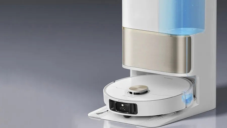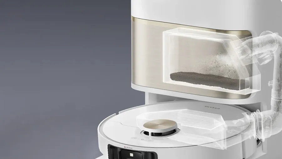 Пылесос с вместительным 3.2-литровым пылесборником в док-станции обеспечивает до 100 дней автономной работы. Система автоматически удаляет мусор после каждой уборки, исключая необходимость прямого контакта с пылью и аллергенами. Это значительно упрощает уход за устройством и делает процесс уборки более комфортным и безопасным.