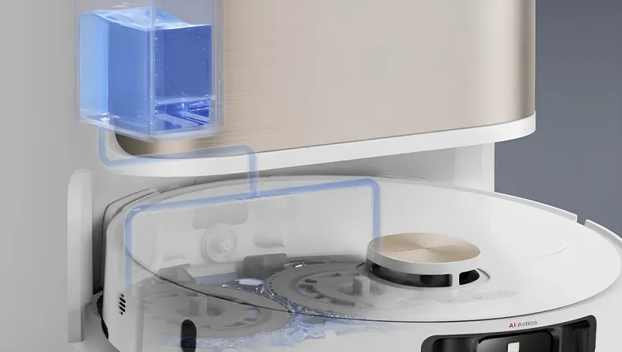 Умная система автоматически пополняет запас моющего раствора, обеспечивая постоянную чистоту и дезинфекцию салфеток на протяжении всего процесса уборки. Вам больше не придется прерывать уборку для долива – робот берет на себя заботу о качестве мойки полов, гарантируя безупречный результат без лишних усилий с вашей стороны.