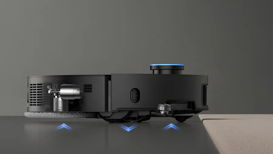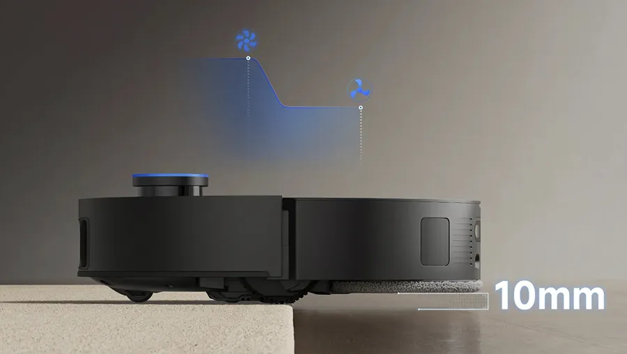 Робот-пылесос использует фирменную систему ProLeap, которая поднимает выдвижные ножки, что позволяет легко преодолевать дверные проемы, U-образную мебель высотой до 42 мм и двухслойные пороги высотой до 60 мм. Интегрированная система амортизации исключает резкие столкновения и обеспечивает впечатляюще низкий уровень шума, обеспечивая тихую и эффективную уборку в любых условиях.