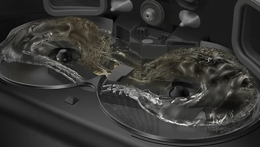 Функция Smart Dirt Detection 2.0 анализирует тип и степень загрязнений в режиме реального времени, моментально адаптируя процесс уборки. Многоспектральный датчик обнаруживает стойкие загрязнения, твердые частицы, лужи и автоматически усиливает очистку проблемных участков.