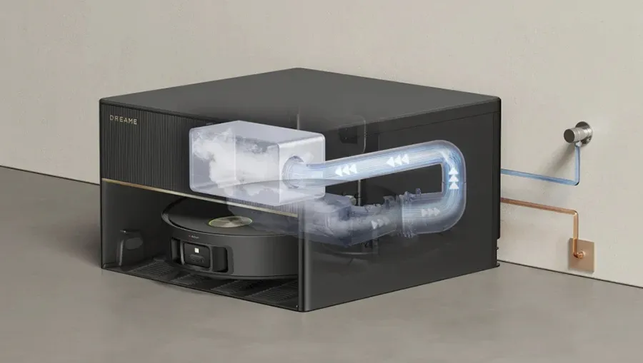 После каждой уборки Dreame X50 Master автоматически сушит швабры горячим воздухом, предотвращая появление неприятного запаха и плесени. Эта функция позволяет поддерживать свежесть в доме и продлевает срок службы моющих элементов.