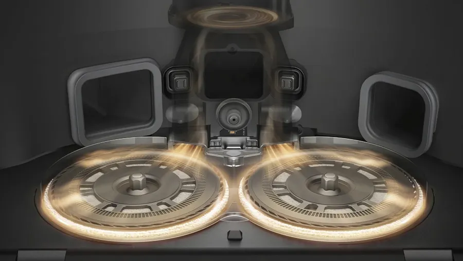 Dreame X50 Master оснащён новейшей технологией Triple Up. Во время влажной уборки боковая и роликовая щётки во избежание намокания поднимаются на 10 и 5 мм соответственно. Это позволяет швабрам эффективно удалять даже сложные загрязнения, такие как пятна от кофе или соевого соуса, а щеткам оставаться сухими.