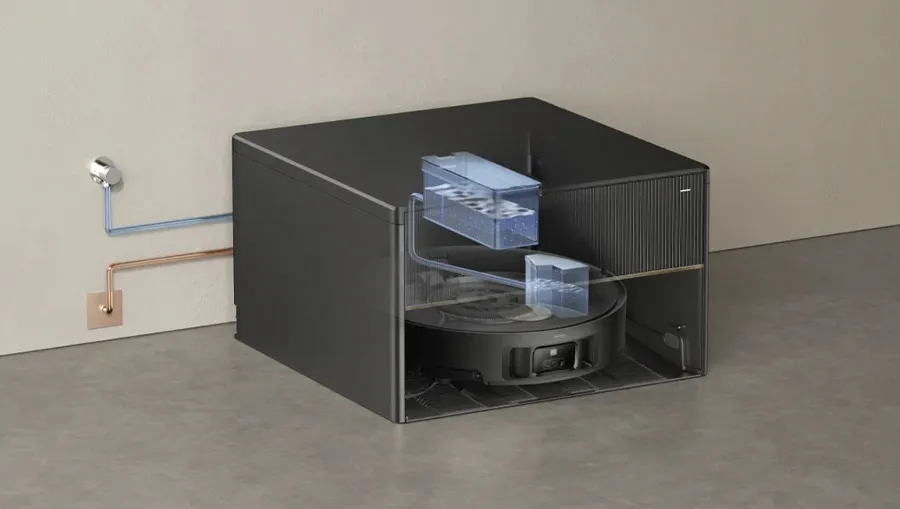 Различные варианты установки позволяют гармонично встроить базовую станцию в интерьер вашего дома. Вне зависимости от места установки будь то кухня — ванная комната или балкон — вы сможете наслаждаться уборкой без хлопот благодаря системам автоматической заправки и слива воды, которые разработаны, чтобы обеспечить максимальное удобство