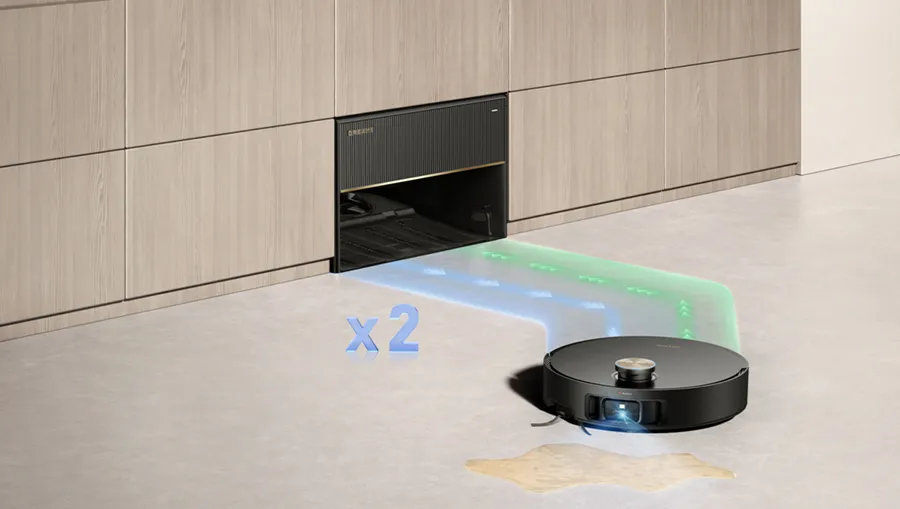 Dreame X50 Master определяет степень загрязнения и использует 32 уровня подачи воды, для точечной уборки сложных пятен, он автоматически активирует повторную мойку проблемных участков, регулируя давление и количество воды, чтобы гарантировать безупречную чистоту без разводов на любых поверхностях.