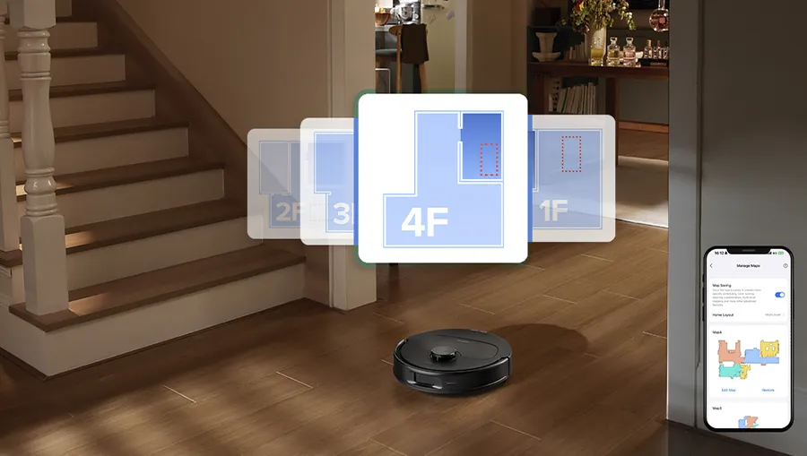 Пылесос RoboRock QRevo L проводит картографирование помещений в 6 раз быстрее аналогичных моделей. Карта отображается в 3D-формате для наглядного понимания и детализации локаций для уборки. Создание многоуровневой картографической системы дает девайсу возможность выбрать наиболее оптимальный маршрут для уборки.