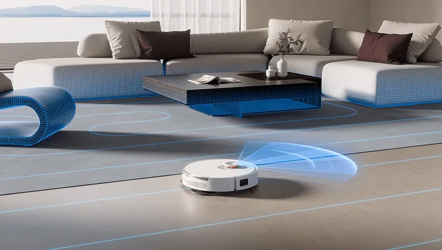 Встроенная система всесторонней лазерной LDS-навигации по всему дому и автоматическое планирование маршрута обеспечивают эффективную и беспроблемную уборку в помещениях любой площади и сложности конфигурации. Девайс осуществляет быстрое картографирование с возможностью разбивки по этажам. В случае остановки процесса уборки пылесос может стартовать с места, где он остановился.