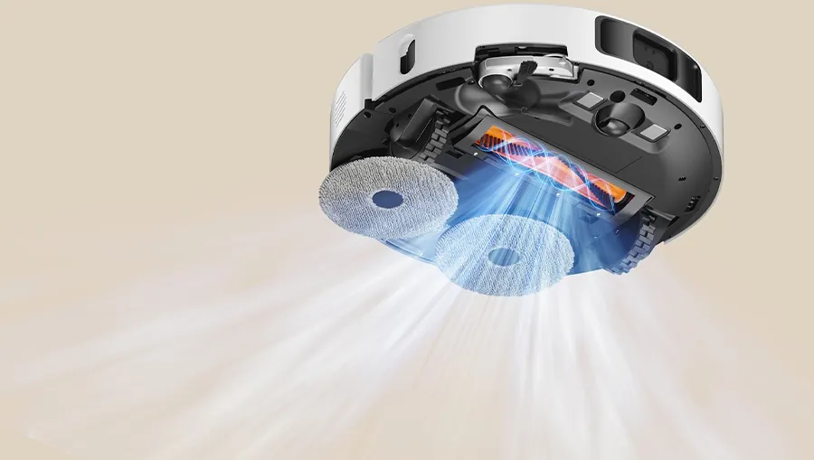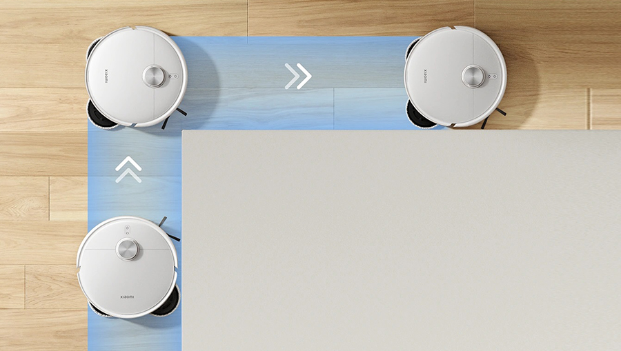 Двойные механические рычаги интеллектуально управляют движением боковой щетки и насадки для влажной уборки, плавно выдвигая их при приближении к стенам и в углах, а затем возвращают их в исходное положение на открытых участках. Такой подход позволяет технике максимально приблизиться к труднодоступным зонам, тщательно удаляя пыль, мусор и пятна даже вдоль плинтусов и в углах, где традиционные устройства часто оставляют «слепые» участки. В результате достигается не только более полный охват убираемой поверхности, но и заметно повышается общая эффективность уборки — без лишних проходов и ручного вмешательства.