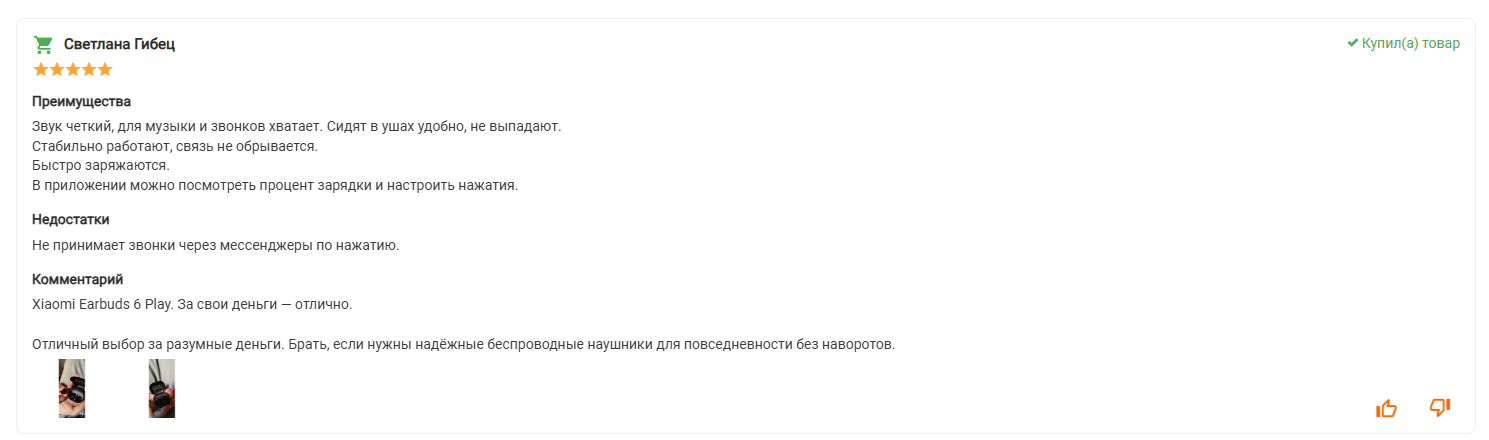 Отзыв был оставлен 2 сентября 2025 к товару Беспроводные наушники Redmi Buds 6 Play Black на нашем сайте:
