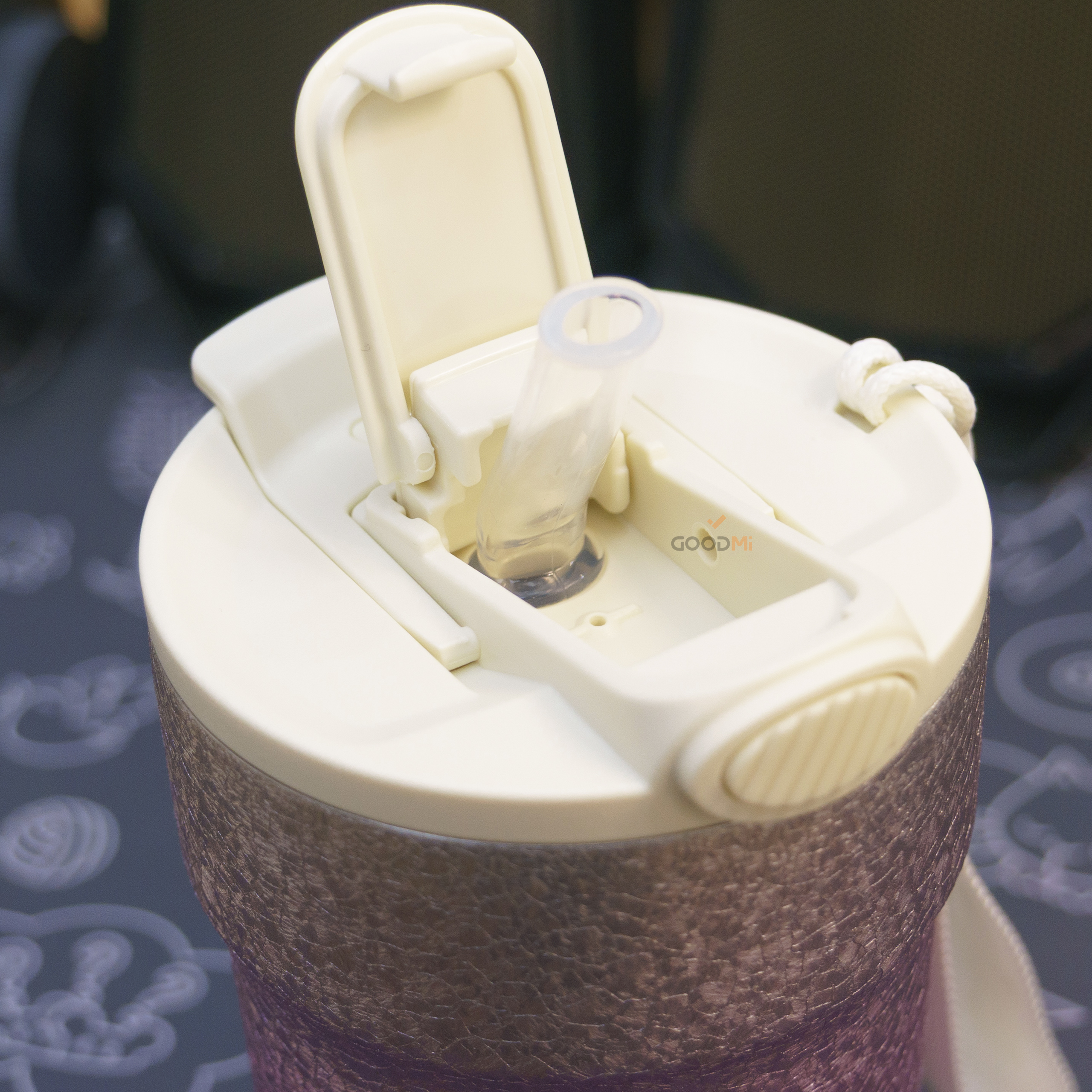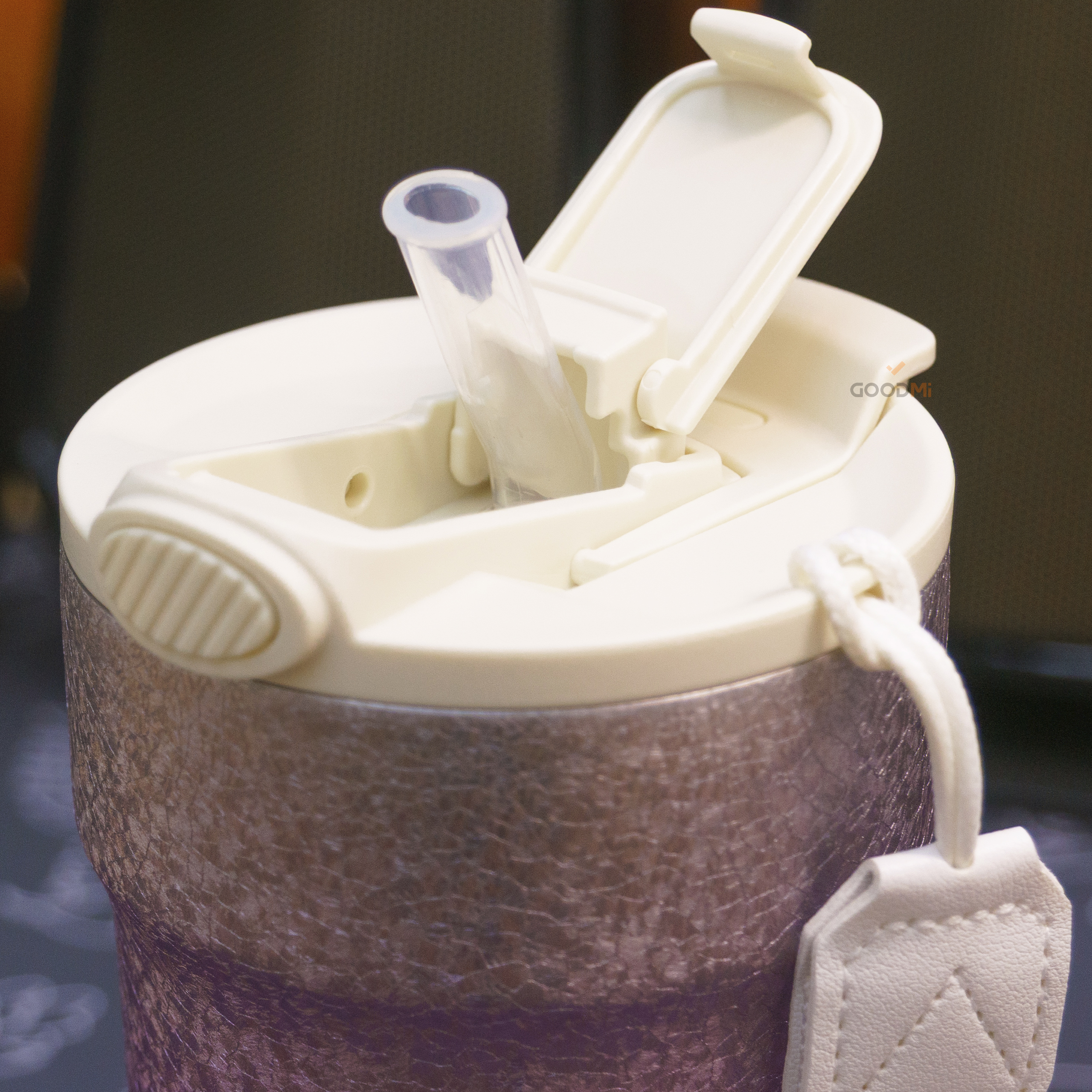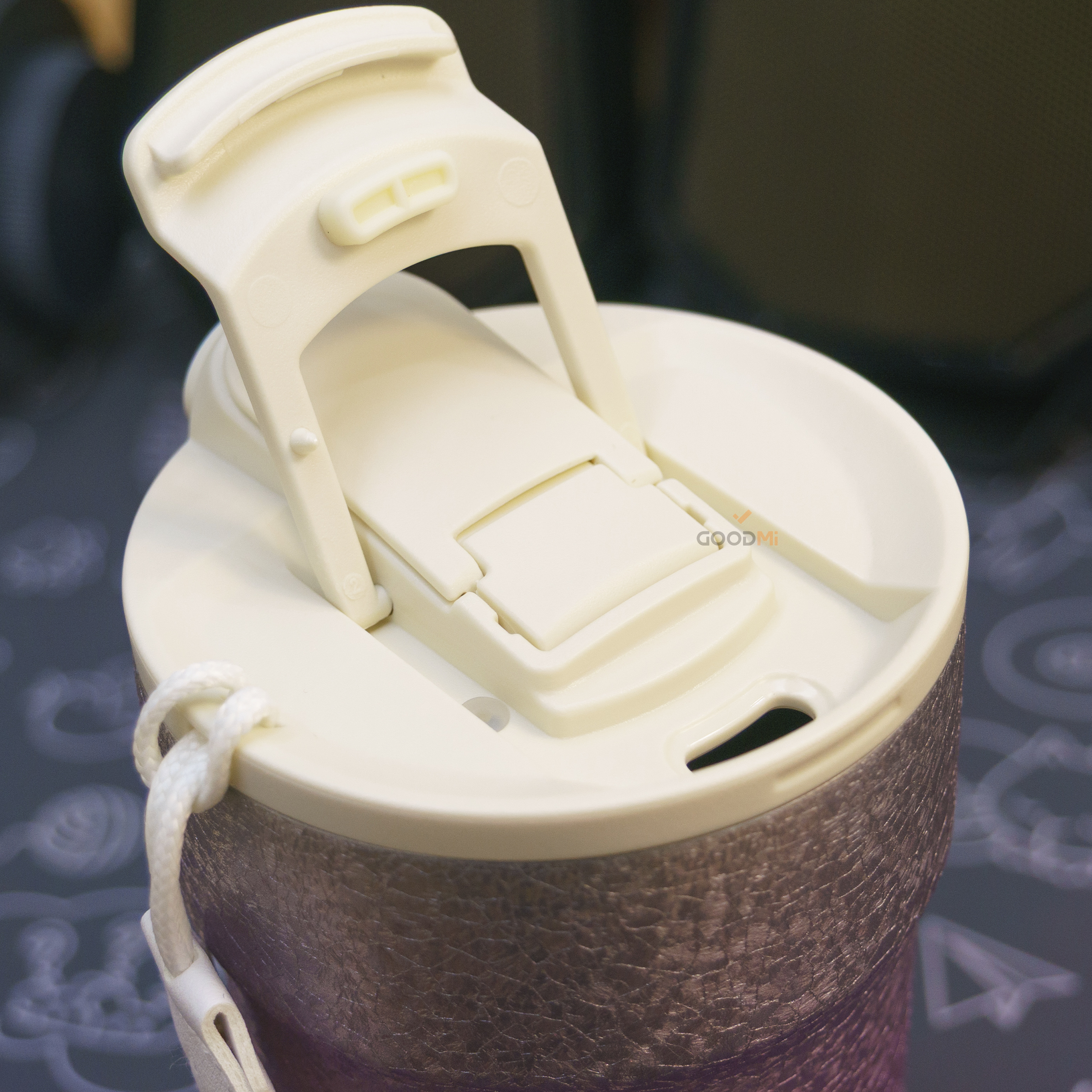 Вакуумная конструкция корпуса обеспечивает превосходное сохранение температуры напитков, позволяя долгое время поддерживать их горячими или холодными. Крышка оснащена удобным откидным механизмом, который делает процесс питья комфортным и гигиеничным, исключая контакт с поверхностью крышки.