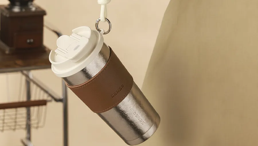 Дизайн термокружки Senso воплощает современный стиль «Urban Tech», предлагая пользователю элегантное металлическое исполнение в благородных сдержанных оттенках, которые идеально сочетаются с любым образом. Особого внимания заслуживает эксклюзивный аксессуар в комплекте — стильный кожаный чехол-футляр с регулируемым ремнем, который превращает кружку в удобный элемент экипировки для путешествий или прогулок по городу. Такое решение не только защищает корпус от случайных царапин и механических повреждений, но и освобождает руки, обеспечивая быстрый доступ к напитку. Лаконичность форм и внимание к тактильным ощущениям делают этот продукт желанным приобретением для ценителей функционального дизайна, для которых важен баланс между красотой и практической пользой.