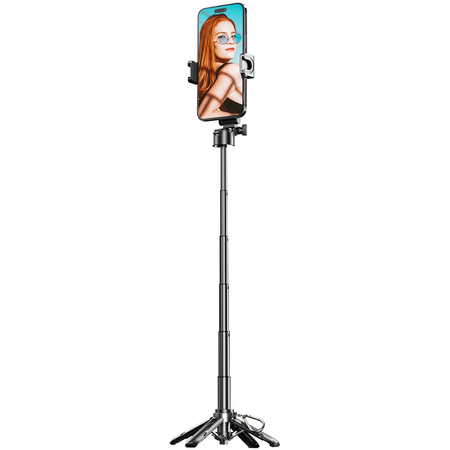 Ручка монопода изготовлена из пластика с приятным на ощупь покрытием, которое предотвращает скольжение и обеспечивает комфортное использование. При раскрывании ножек, монопод превращается в настольный штатив, который обеспечивает стабильность и надежную поддержку для вашего телефона в любом положении, которое вам необходимо.