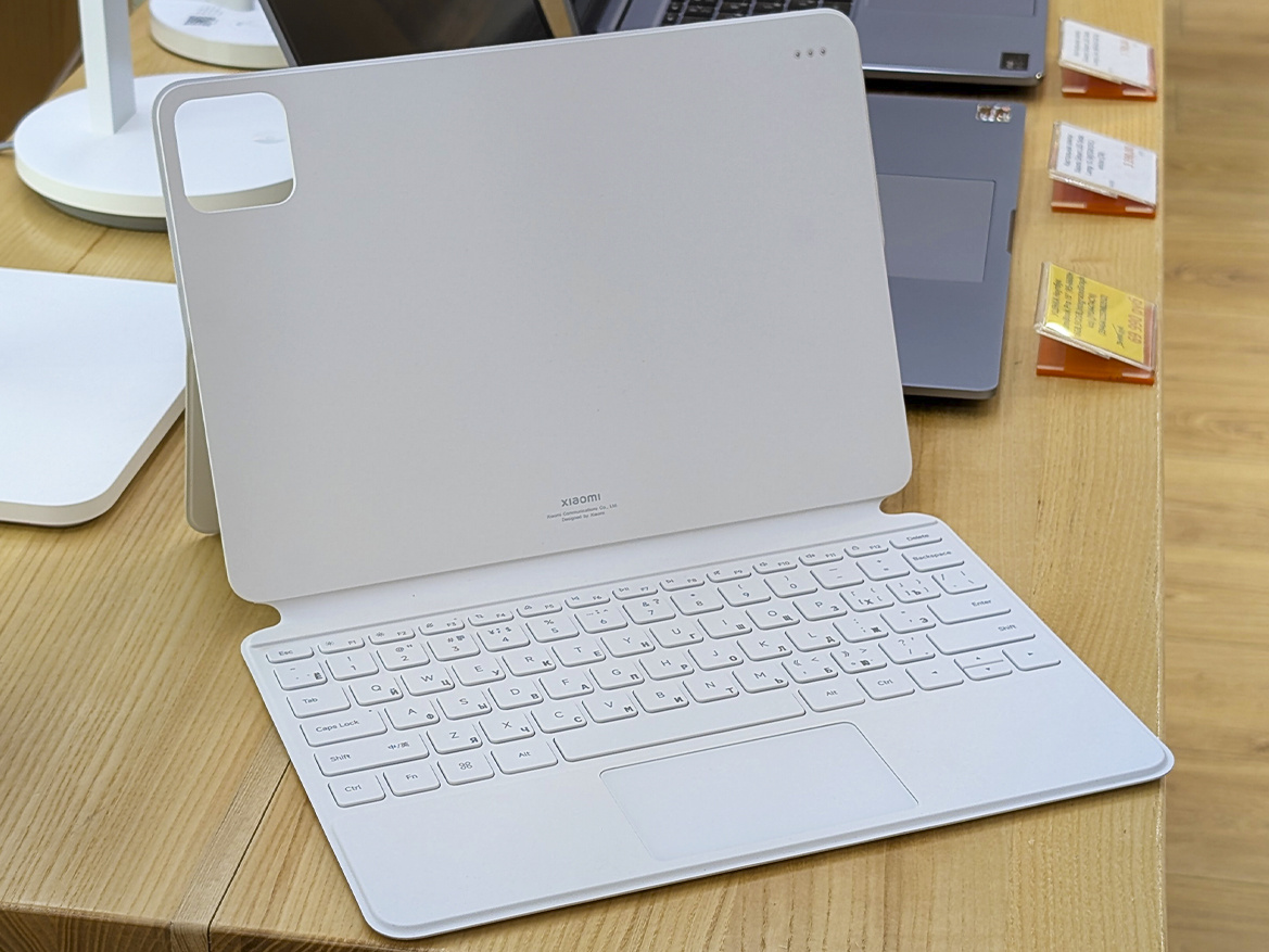 После подключения через магнитный штекер Xiaomi Pad и защитный чехол для клавиатуры формируют треугольную опору, становясь для устройства надежным креплением, удобным для работы.
