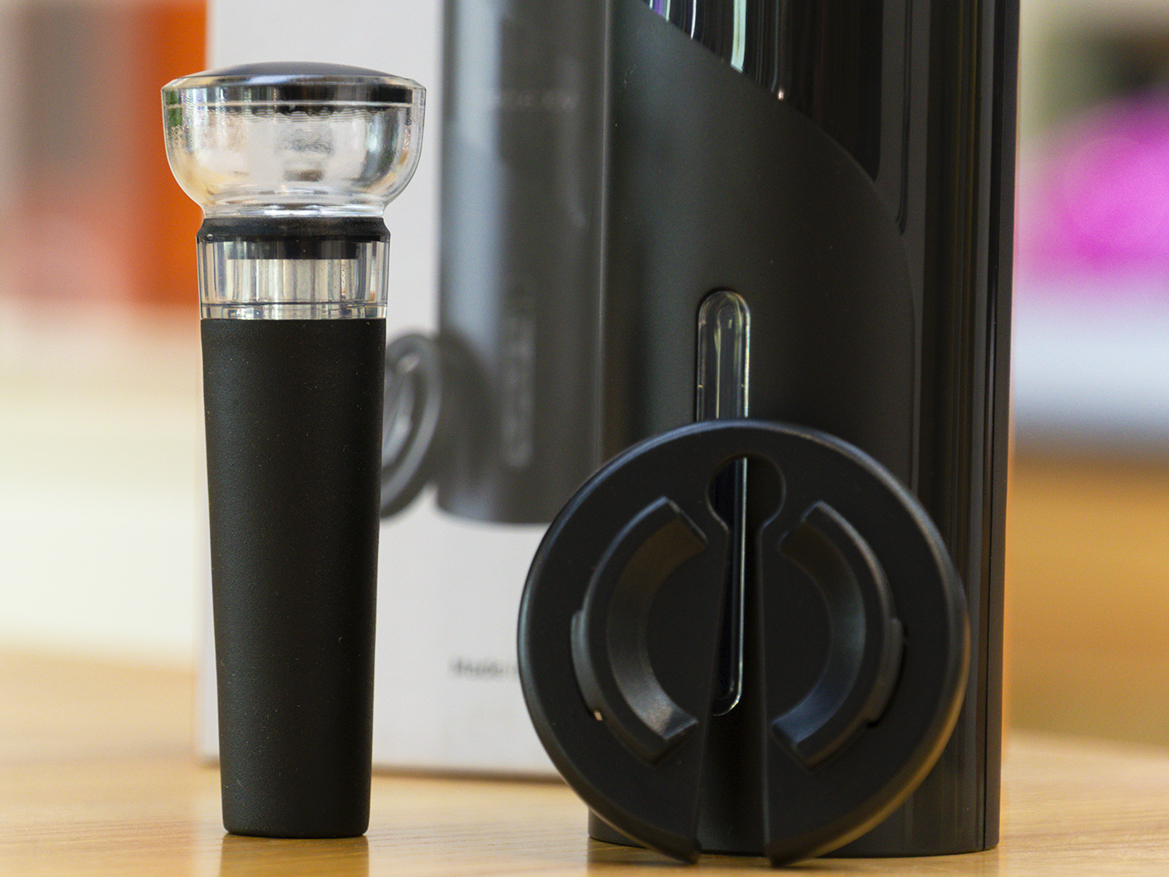 Управление штопором осуществляется с помощью двух кнопок: нижняя позволяет открыть бутылку, а верхняя - вынуть пробку. Прозрачное окошко позволяет контролировать движение пробки.
