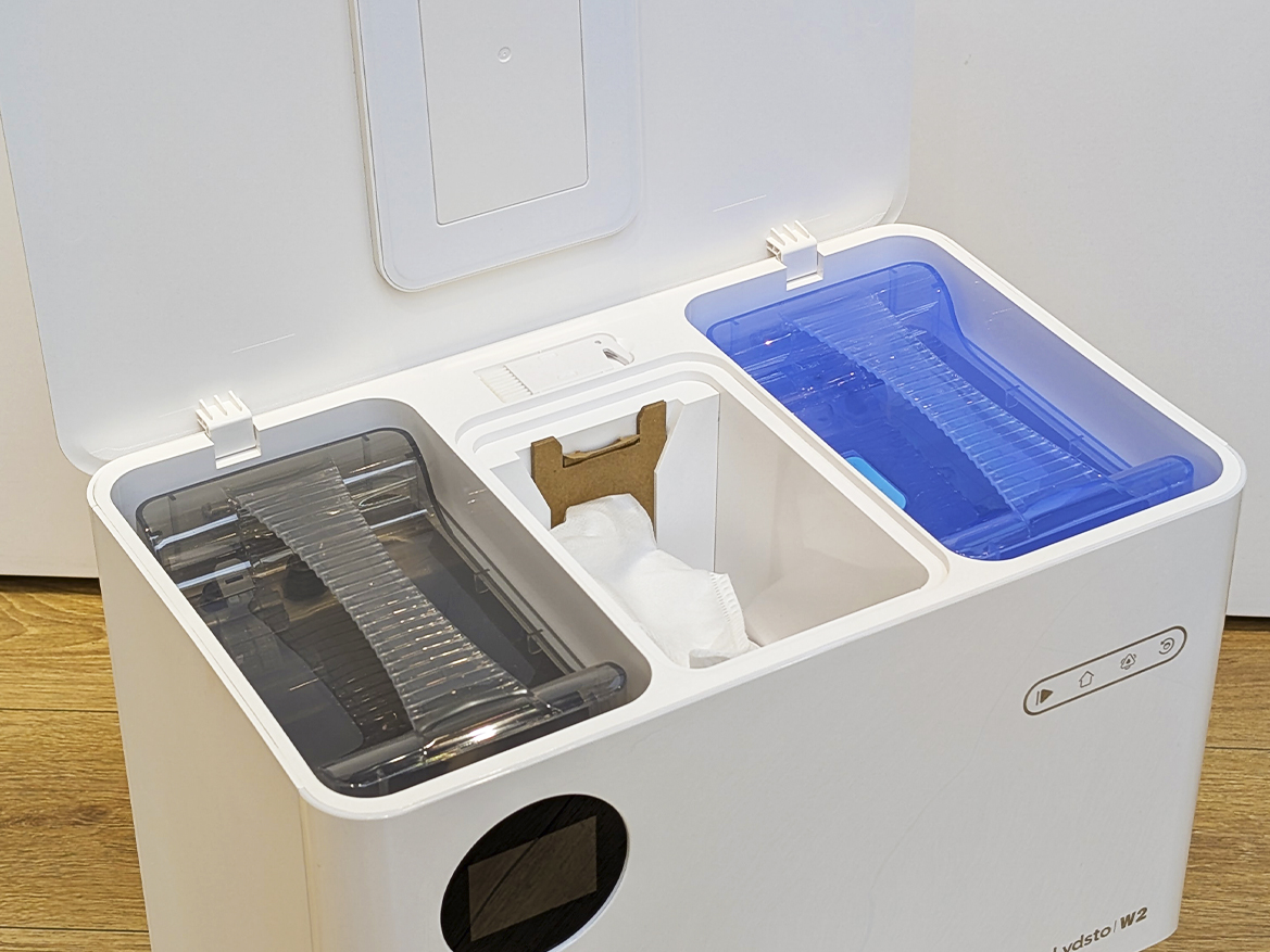 Автоматическая станция Lydsto заботится и о чистоте швабры. Она промывает тряпки после каждой уборки горячей водой с температурой 50 градусов по Цельсию, что облегчает удаление пятен. А затем просушивает их с помощью горячего воздуха при температуре 60 градусов. Это позволяет предотвратить появление бактерий и запаха, а также подготовить девайс к следующему циклу уборки.