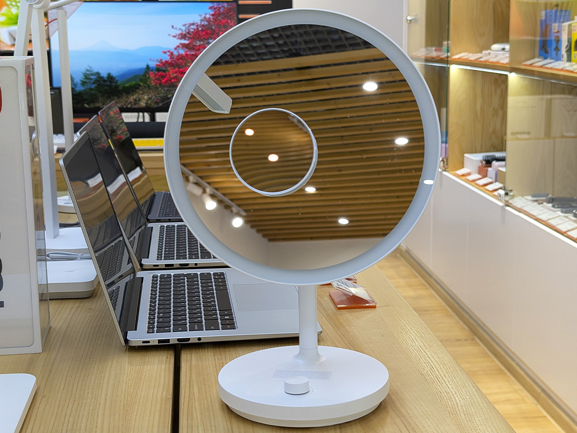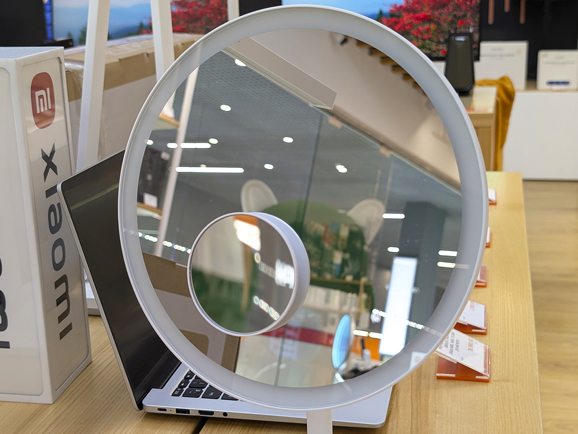 Управление подсветкой зеркала, а также настройка времени производятся с помощью многофункциональной кнопки, расположенной на подставке. Встроенные светодиоды обладают высокой цветопередачей, поэтому даже в полной темноте они сохраняют естественные цвета окружающих предметов, позволяя правильно подбирать и смешивать тона.