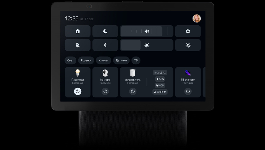 Станция Дуо Макс взаимодействует со всеми умными датчиками и устройствами, совместимыми с протоколом Zigbee, который способен работать без доступа к интернету. Это позволяет сделать колонку центром управления Умным домом. Попросите Алису включить свет или поставить музыку, узнайте, какая температура и влажность в комнате, закрыта ли входная дверь. Вся информация теперь дублируется на экране, поэтому не придется доставать смартфон и запускать приложение, чтобы скорректировать настройки.