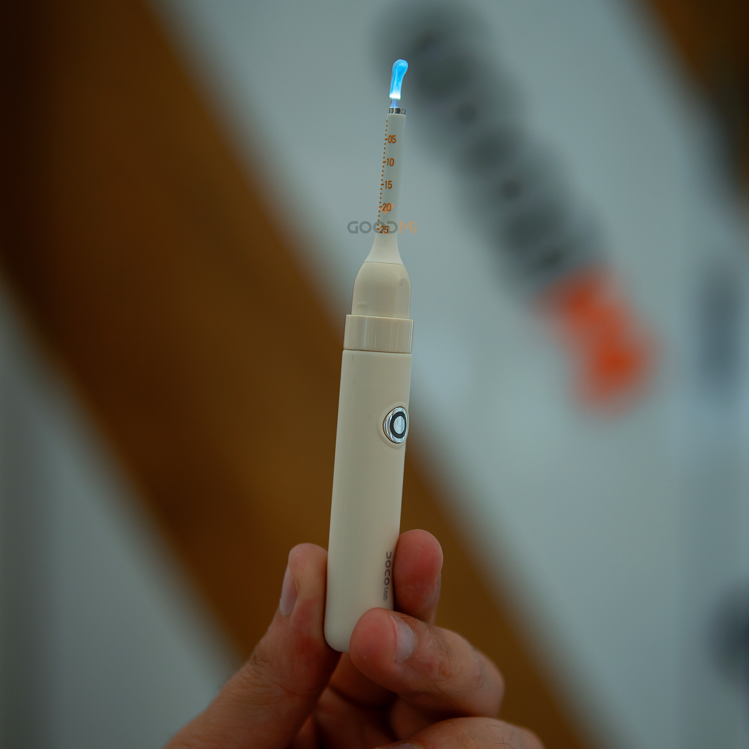 Одним из главных достоинств ушной палочки DOCO Lab EP001 является её эргономичный дизайн, который обеспечивает удобство использования в любом положении — сидя, лежа или стоя. Благодаря анатомической форме и набору сменных трехцветных силиконовых насадок, устройство идеально подстраивается под индивидуальные особенности ушного канала, обеспечивая мягкий и безопасный контакт с кожей. Эти насадки легко очищаются и эффективно удаляют ушную серу, не травмируя кожу. Компактный размер и легкий вес палочки делают её удобной для длительного использования, что особенно важно для тех, кто ценит комфорт и безопасность.