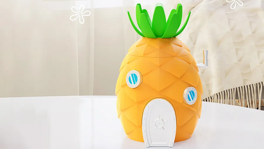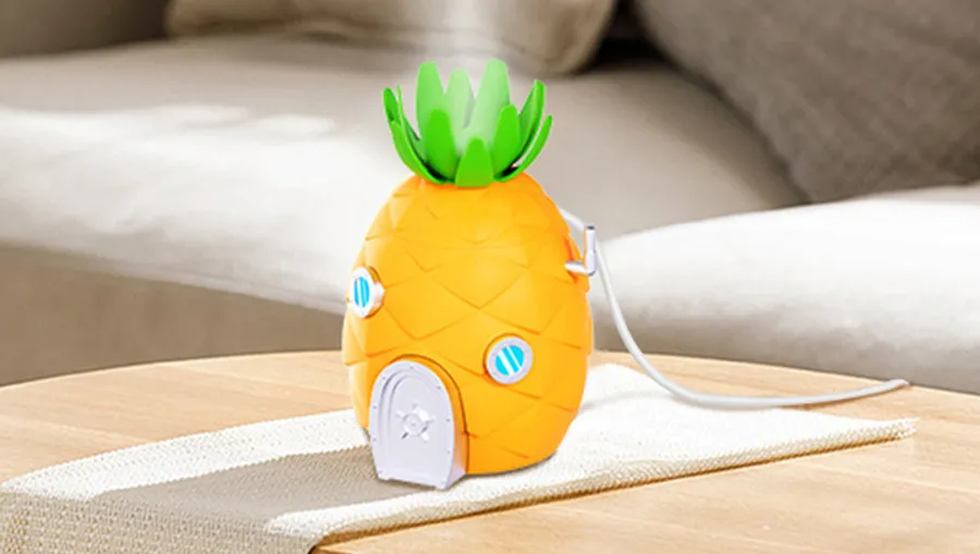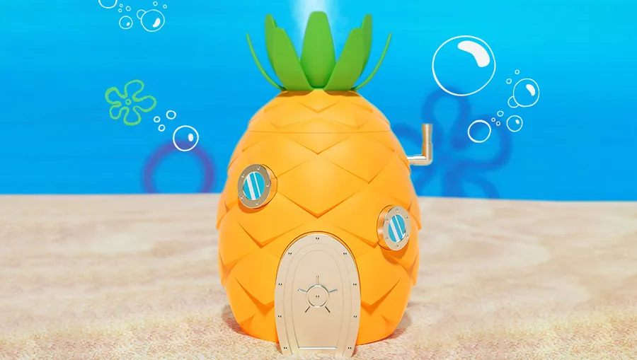Внешний вид увлажнителя полностью повторяет архитектуру знаменитого подводного дома-ананаса: сочное сочетание оранжевого корпуса и ярко-зеленой верхушки мгновенно преображает рабочее место или прикроватную тумбу. Дизайнеры уделили особое внимание деталям, сохранив характерную текстуру и лаконичность линий, что позволяет гаджету гармонично смотреться в любом современном интерьере — от детской комнаты до креативного пространства. Использование качественных материалов и проработка каждой грани делают этот аксессуар настоящим арт-объектом, который неизменно привлекает внимание гостей и дарит положительные эмоции фанатам вселенной Nickelodeon всех возрастов.