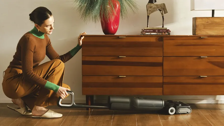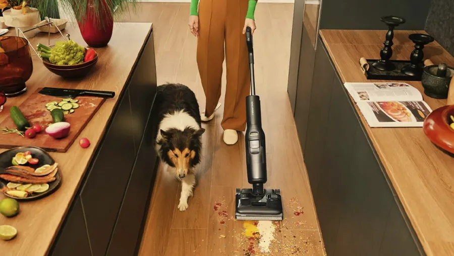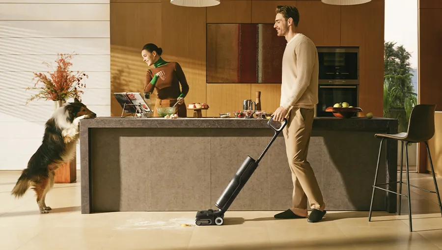 Самоочистка горячей водой позволяет поддерживать высокий уровень чистоты встроенной швабры без усилий и контакта с загрязненным инструментами. Пылесос для влажной и сухой уборки удаляет жир и грязь, а двунаправленная очистка гарантирует глубокую мойку швабры. Благодаря быстрой сушке при температуре 90°C девайс вскоре снова готов к использованию. Доступно два режима сушки: быстрая за 5 минут или тихая за 20 минут, что позволяет быстро вернуться к наслаждению чистым пространством.