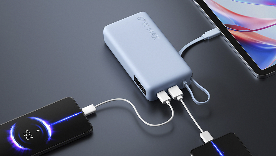 Благодаря продуманной конфигурации из встроенного кабеля USB-C, дополнительного порта USB-C и разъема USB-A, вы можете заряжать до трех девайсов одновременно. Это избавляет от необходимости выбирать, какой гаджет важнее, и позволяет делиться энергией с друзьями или коллегами. Высокая суммарная мощность гарантирует стабильное распределение тока между всеми портами, предотвращая перегрев и обеспечивая эффективную работу всего вашего мобильного сетапа.