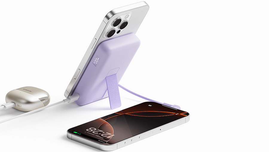 Встроенная в Xiaomi Magnetic Power Bank 10000 регулируемая подставка предлагает гибкую настройку угла наклона экрана смартфона до впечатляющих 80°, что создаёт идеальные условия для комфортного просмотра видео, работы с навигацией, чтения сообщений или даже видеозвонков без необходимости держать устройство в руках. Надёжная магнитная фиксация на основе технологии MagSafe мгновенно и крепко удерживает iPhone (начиная с линейки iPhone 12 и более поздние модели (за исключением iPhone 16e)), обеспечивая полную стабильность даже при тряске в транспорте или активных движениях, и полностью освобождая ваши руки для других дел. Удобный встроенный кабель USB-C гармонично дополняет беспроводную зарядку, позволяя заряжать телефон на полной скорости одновременно с его активным использованием — будь то стриминг контента, важные звонки, работа в приложениях или игры, — превращая аккумулятор в универсальный аксессуар для максимального комфорта, продуктивности и мобильности в повседневной жизни.