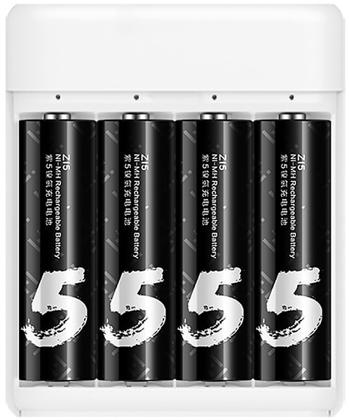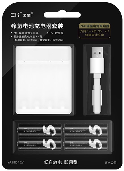 ZMI PB411 + 4шт AA - USB зарядное устройство с четырьмя никель-металлогидридными аккумуляторами Ni-MH ZI5 типоразмера АА и емкостью 1700 мАч. С этим комплектом вам не придется постоянно тратится на покупку дорогих батареек для любимых часто используемых электронных устройств, таких как фонарики, плееры, механизированные игрушки, пульты дистанционного управления, часы и пр.